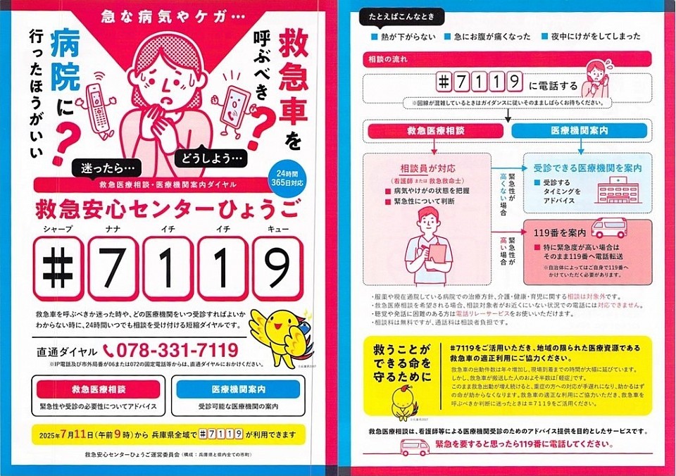 短縮ダイアル#7119 か 直通ダイアル078-331-7119 に